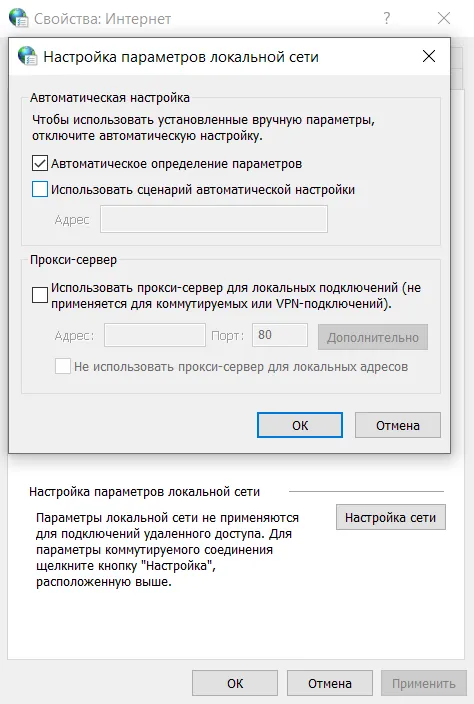 - Check the "Auto detect settings" (if not already checked) and uncheck the "Use proxy server for local connections". Done